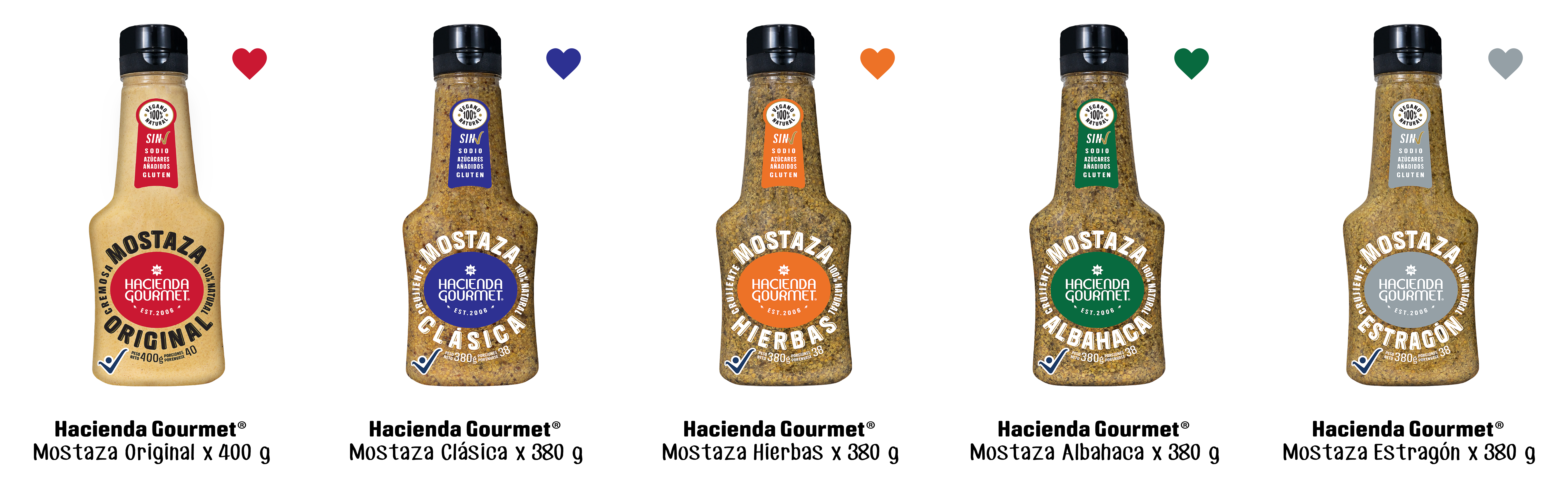 Todas nuestras mostazas se elaboran a partir de una receta artesanal milenaria y se caracterizan por su auténtico sabor suave con matices aromáticos.